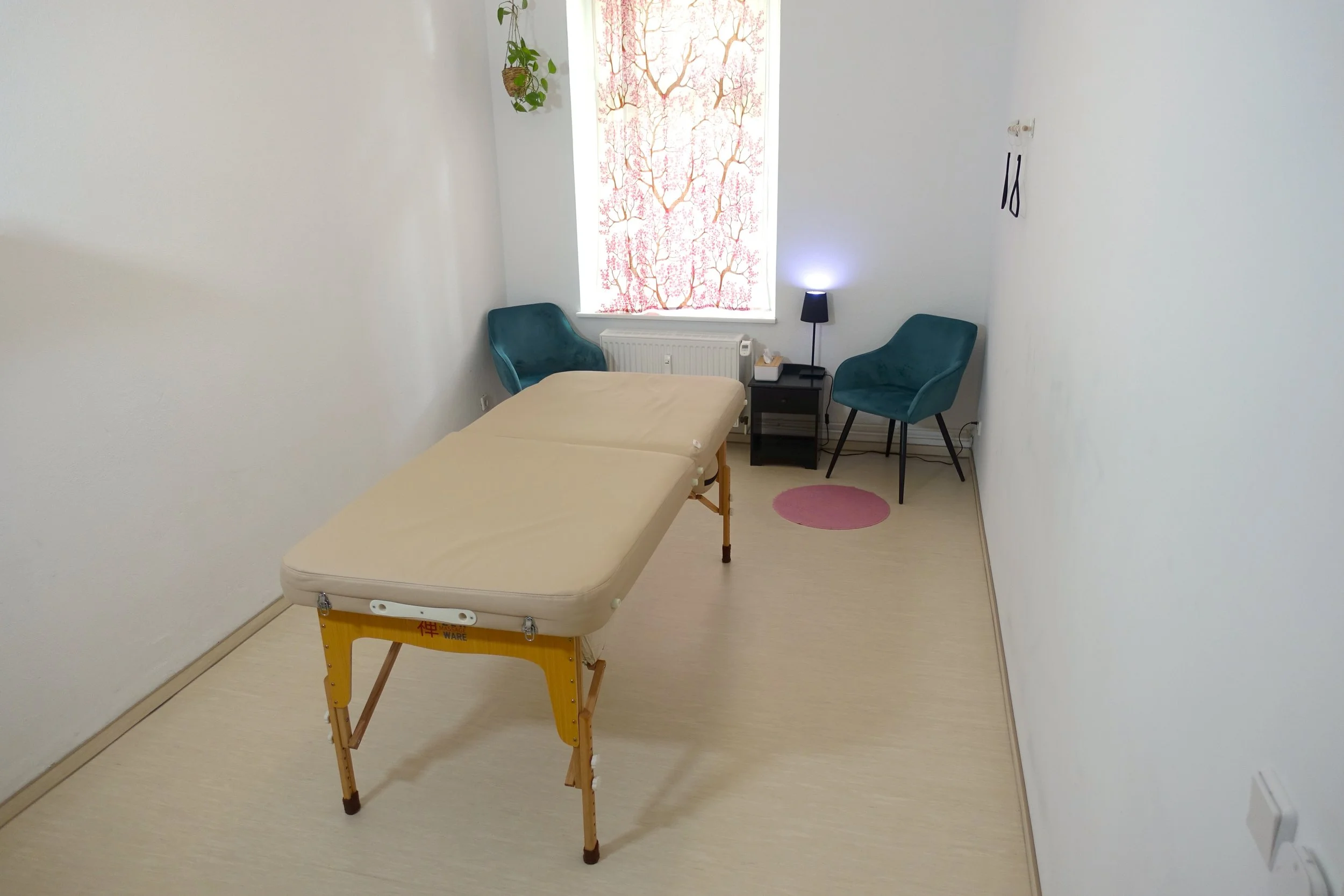 The office is located on the ground floor of a residential building, a hidden gem in Berlin. We offer two beautiful rooms for various types of bodywork offerings and movement lessons, 7 days per week. Both rooms have dimmable lighting to allow for a variety of atmospheres, from energizing to relaxing.